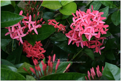 Here is from another direction. The crotons (Mammey) became bare sticks after the devastating cold weather early this year, but now their colorful foliage is coming back. The red Ixora behind the crotons are all showing the buds, so very soon this front bed will look very cheerful!